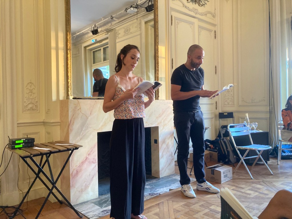 Les comédiens Claire Bourgeois et Mohamed Brikat de la compagnie Le Raid avec tout leur talent, ont mis en voix nos textes et je vous assure que c’était émouvant de les entendre.